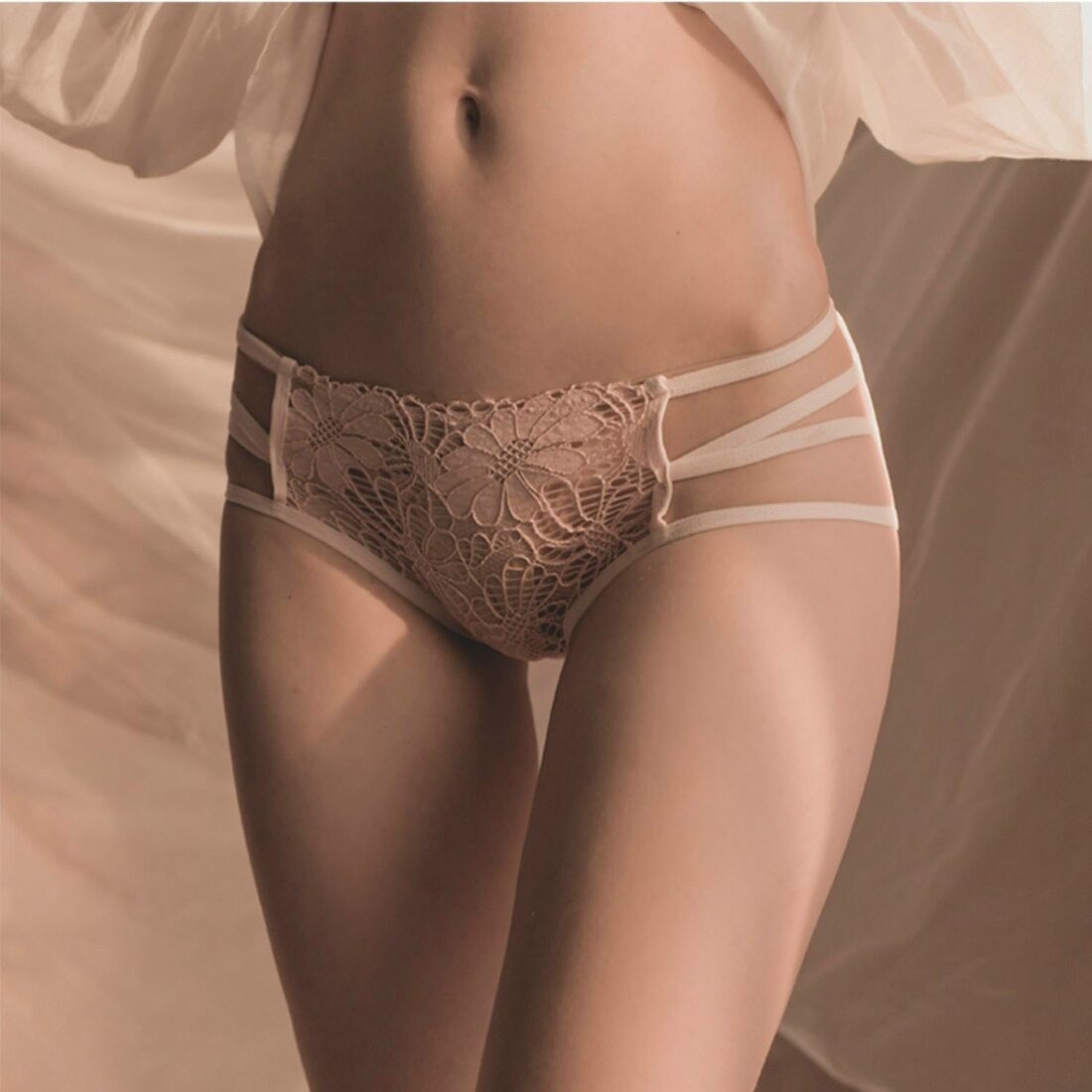 Quần lót ren mềm họa tiết hoa phối dây đan cực sexy cho nàng thêm phần quyến rũ. Màu: trắng, đen, hồng.