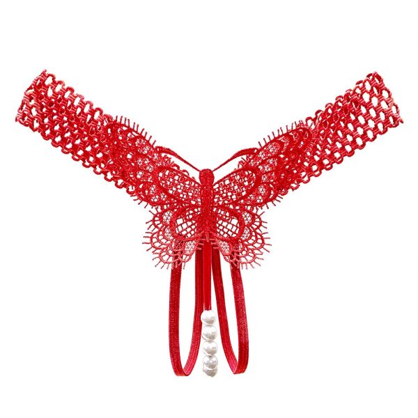 Quần lót ren kiểu dáng xẻ đáy đính chuỗi ngọc cho bạn vẻ gợi cảm quyến rũ. Màu sắc: đen, đỏ, trắng, tím.