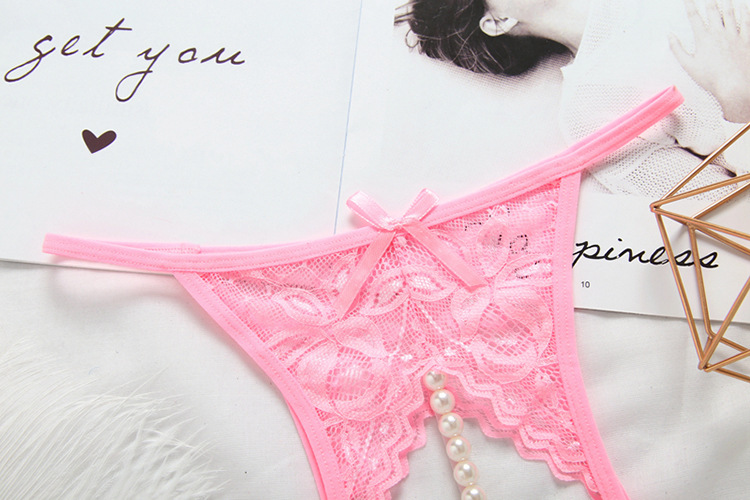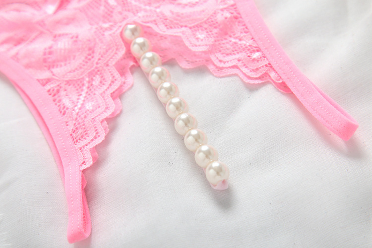 Chất liệu ren mềm mịn kiểu dáng quần xẻ đáy đính chuỗi hạt ngọc gợi cảm. Màu: đen, đỏ, trắng, hồng.