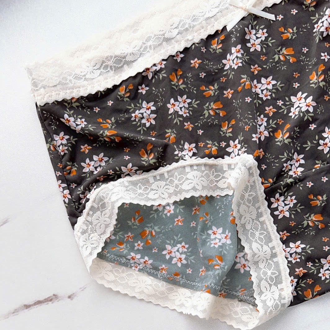 Hình ảnh chi tiết Quần lót thun lạnh hoạ tiết hoa li ti đáng yêu 3 màu