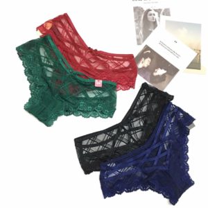 Quần lót chất liệu ren kiểu dáng nửa mông đan dây gợi cảm. Màu: đen, đỏ, xanh.