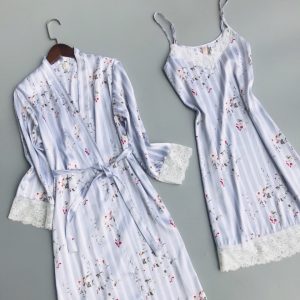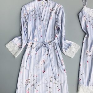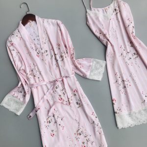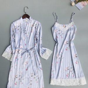 Sét áo choàng và đầm ngủ phi lụa phối ren cao cấp 2 màu DN793
