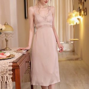 Thiết kế: Dáng dài suông nhẹ, giúp tôn dáng và tạo sự thoải mái khi di chuyển. Phần ngực phối ren tinh tế, kết hợp với chi tiết cắt cúp tôn lên vẻ gợi cảm nhưng vẫn thanh lịch. Dây áo mảnh, có thể điều chỉnh để phù hợp với cơ thể. Đường may sắc sảo, tôn lên sự cao cấp và chỉn chu của sản phẩm.