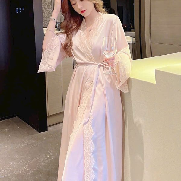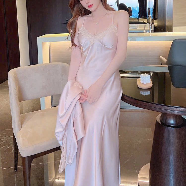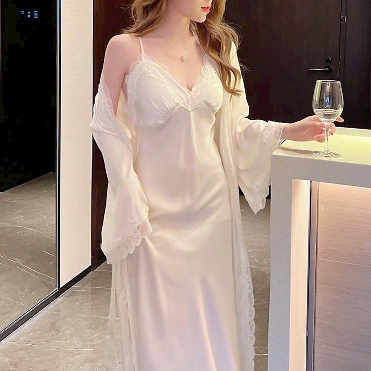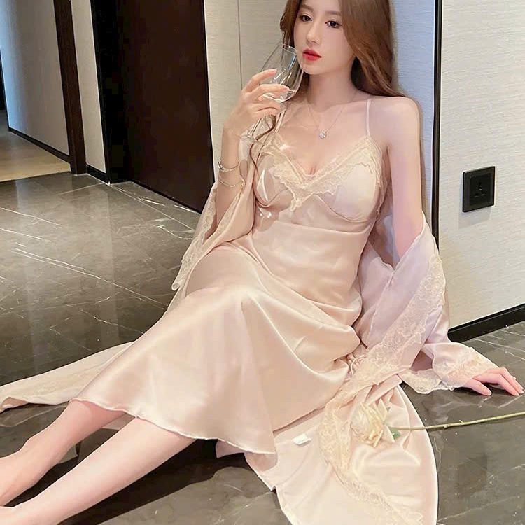 Hình ảnh chi tiết Sét choàng và váy ngủ dài lụa cao cấp kiểu dáng sang trọng 2 màu