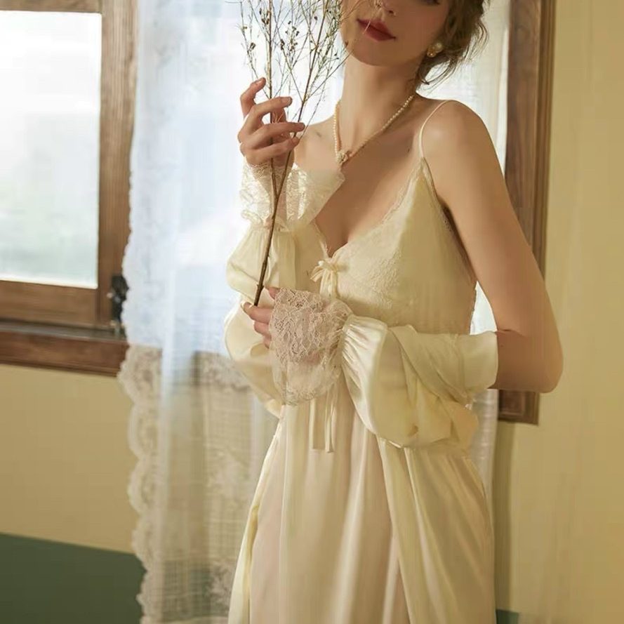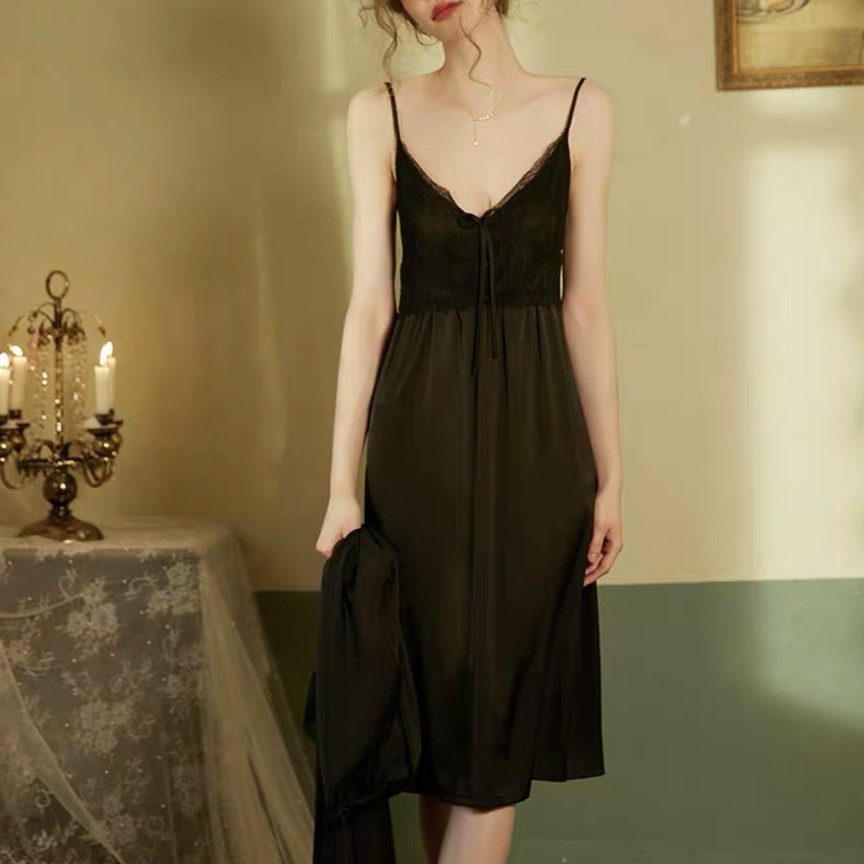 Chất liệu lụa cao cấp sét choàng và váy ngủ dài phối ren sang trọng mang cho bạn sự thoải mái gợi cảm khi mặc. Màu sắc: đen, đỏ, trắng.