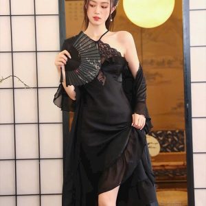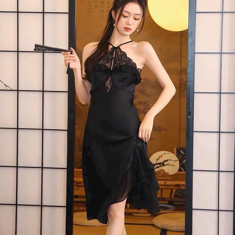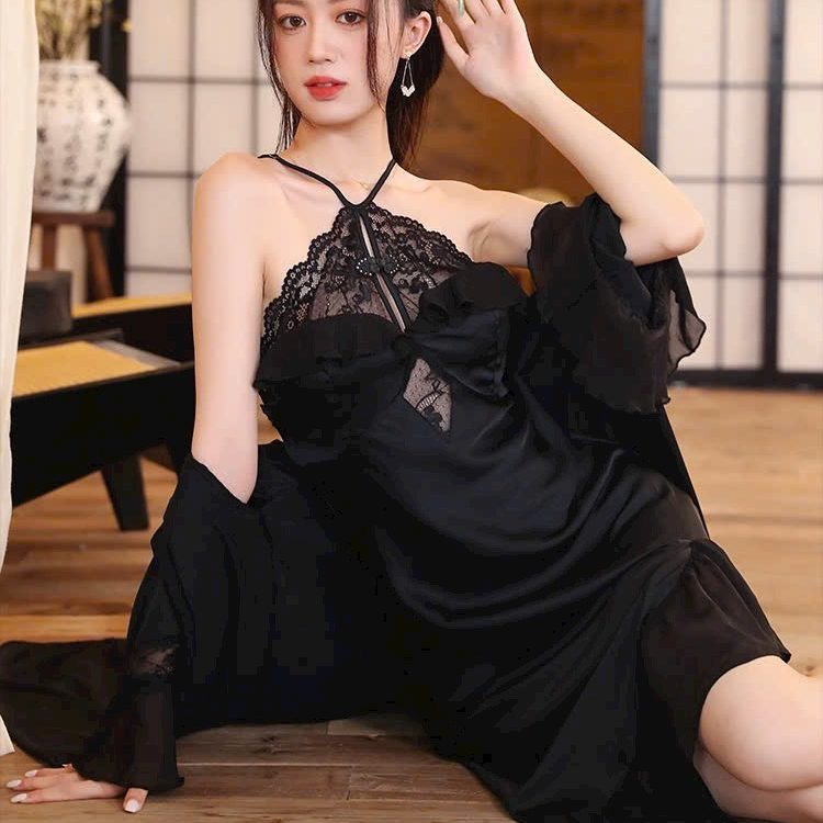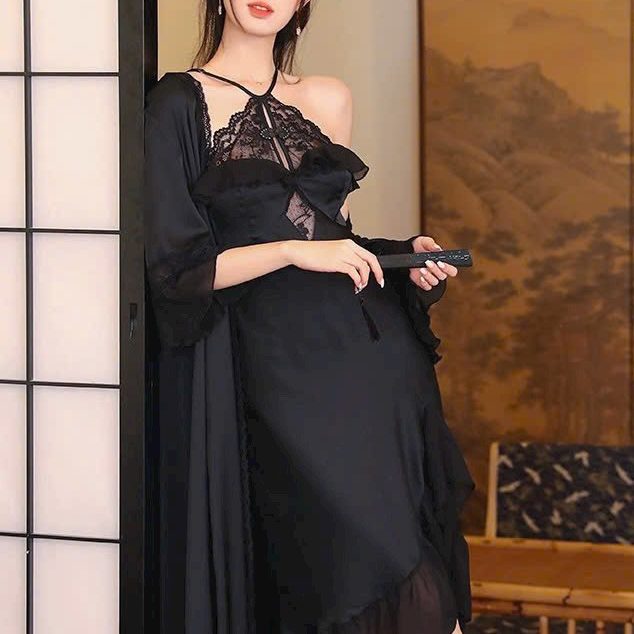 Sét choàng và váy ngủ lụa phối ren cực sang trọng và quyến rũ cho chị em thích gu sang chảnh.
