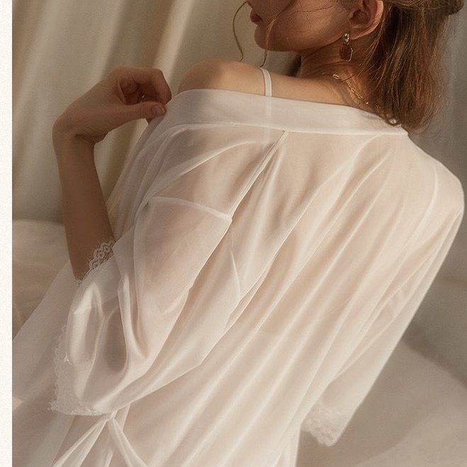 Hình ảnh chi tiết Sét choàng và váy ngủ ren trong suốt gợi cảm sang trọng 2 màu