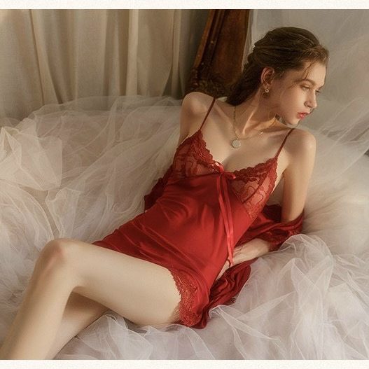 Sét choàng và váy ngủ ren mềm mịn xuyên thấu kiểu dáng trẻ trung ren sắc sảo cho bạn sự quyến rũ khó cưỡng. Màu sắc: đỏ, trắng. (Kèm quần lót)