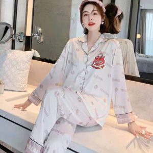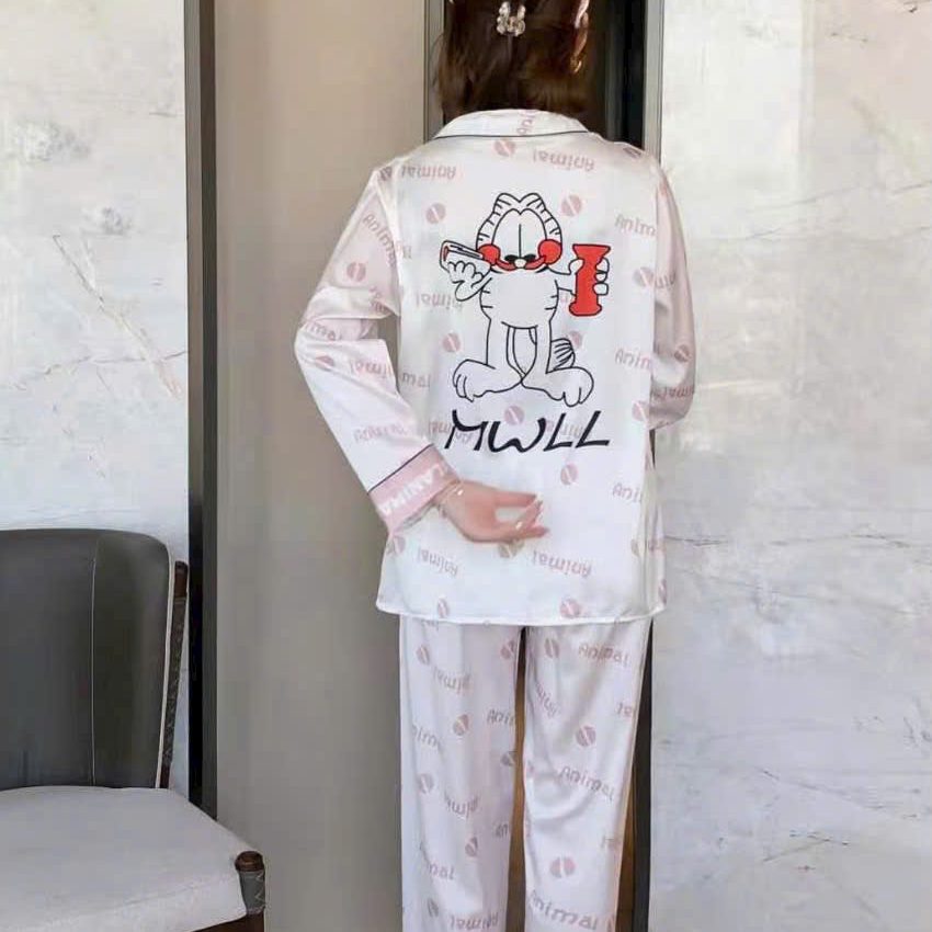 Set đồ ngủ dài với họa tiết mèo đáng yêu, mang vibe nhẹ nhàng – nữ tính. Thiết kế cổ vest thanh lịch kết hợp form rộng thoải mái, giúp nàng vừa xinh vừa dễ chịu suốt cả ngày.