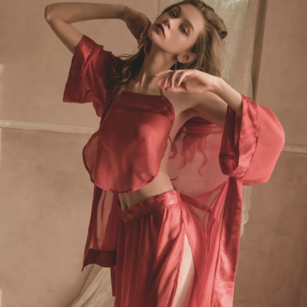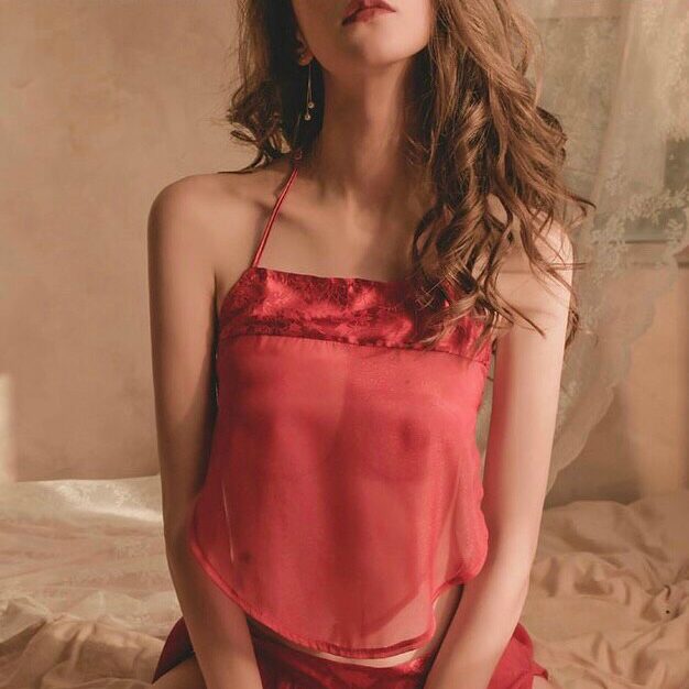 Chất liệu vải voan họa tiết sắc sảo xuyên thấu kiểu dáng yếm, quần cột dây và choàng mang lại cho bạn nữ sự quyến rũ khác lạ.