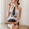 Trang phục cosplay bao gồm: nón, vòng cổ, áo lót, vòng tay và váy. Kiểu dáng không những cute đáng yêu mà còn quyến rũ gợi cảm hết nấc.