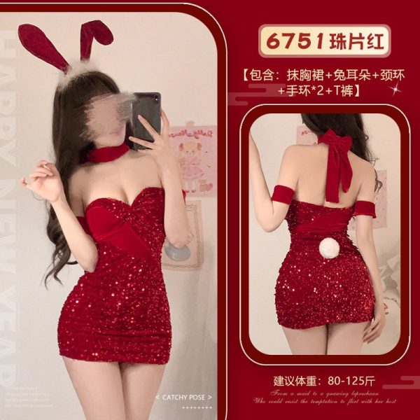 Trang phục cosplay nàng thỏ cực quyến rũ tăng thêm sự gợi cảm đáng yêu cho nàng. Full sét bao gồm: cài tóc, vòng cổ, vòng tay và đầm.