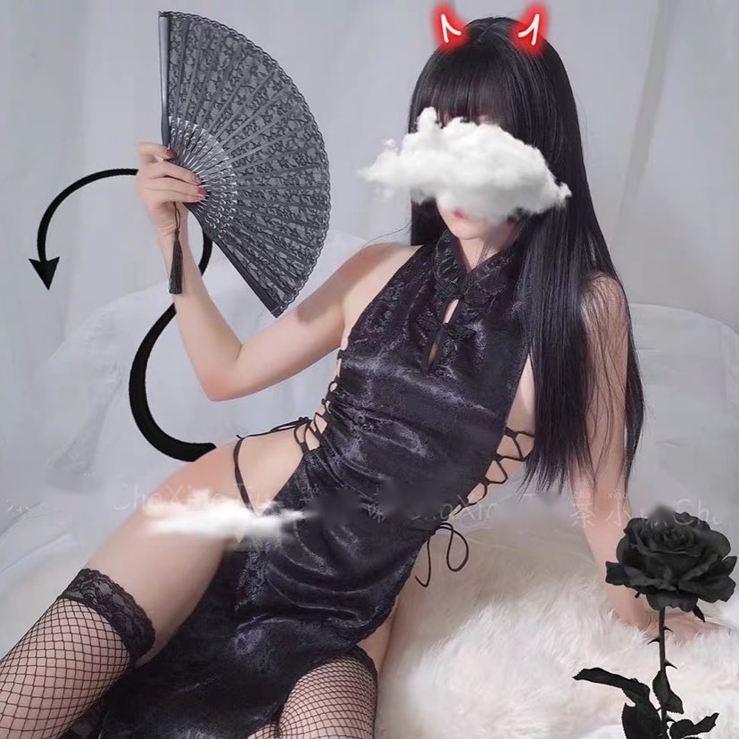 Trang phục cosplay sườn xám xẻ hai bên hông đan dây gợi cảm. Kiểu dáng hiện đại trẻ trung phù hợp cho nàng cá tính mang lại cho bạn màu sắc tươi mới quyến rũ. Màu: đen, trắng.
