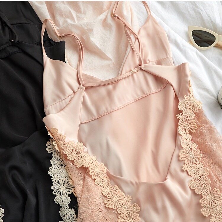 Chất liệu satin cao cấp phối ren sang trọng kiểu dáng hai dây hở lưng cực gợi cảm mang lại sữ quyến rũ cho phái đẹp. Màu: đen, da.