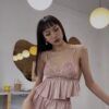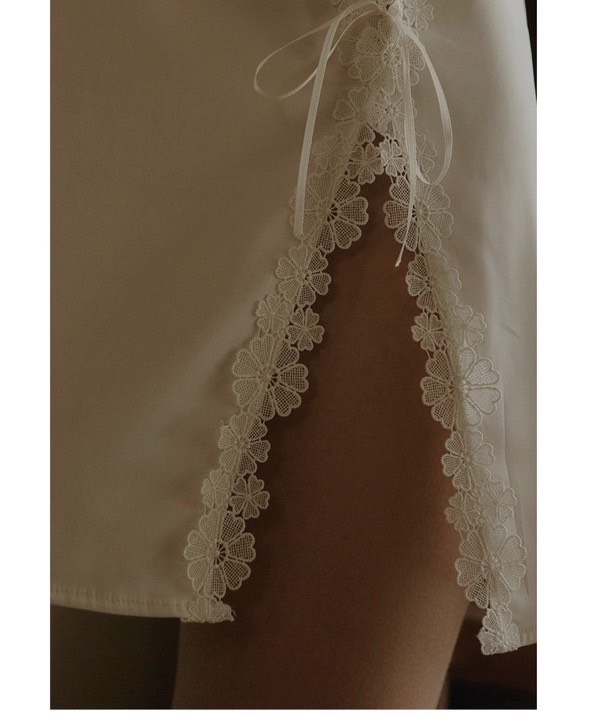 Chất liệu lụa satin cao cấp phối ren mềm mịn kiểu dáng hai dây truyền thống xẻ đùi gợi cảm mang lại cho nàng vẻ sexy khó cưỡng.