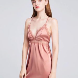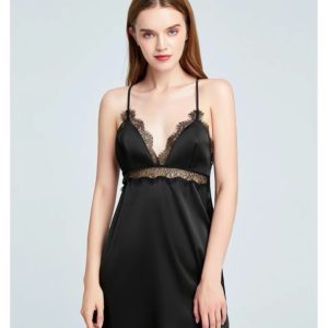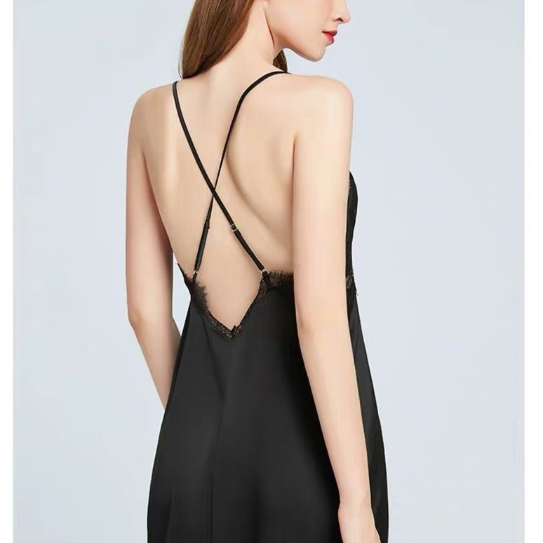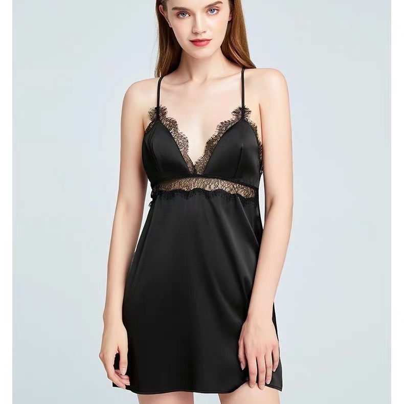Váy ngủ satin sang trọng phối ren kiêu sa, kiểu dáng hai dây khoe trọn bờ vai trần sexy của người phụ nữ. Màu: đen, hồng.