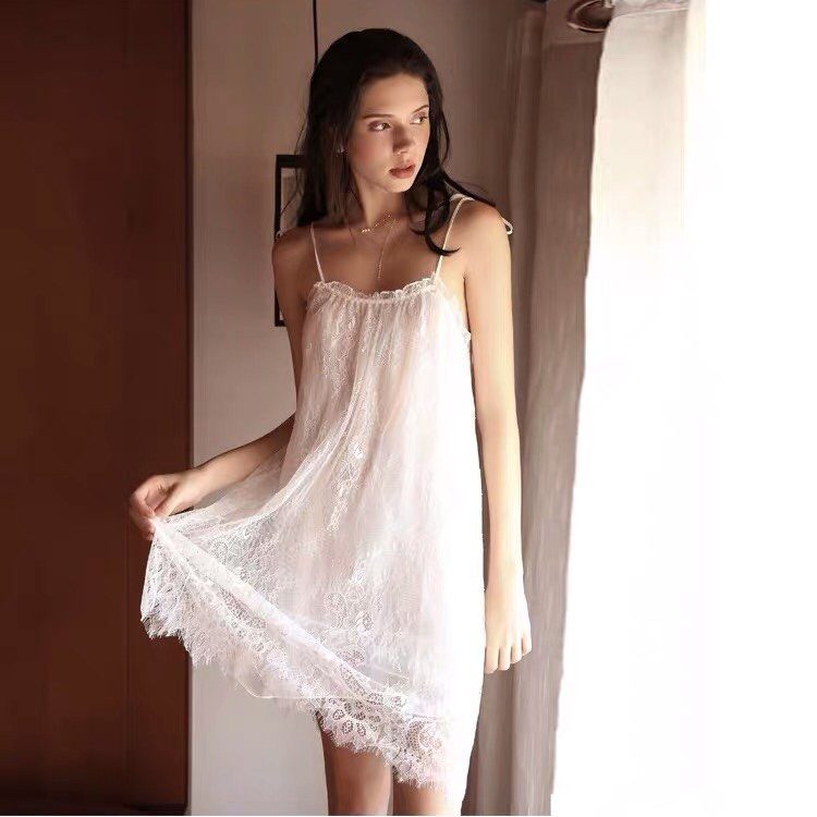 Váy ngủ hai dây chất liệu ren mềm 2 lớp, kiểu dáng thiết kế trẻ trung xinh xắn. Freesize thích hợp cho bạn nữ dưới 55kg.