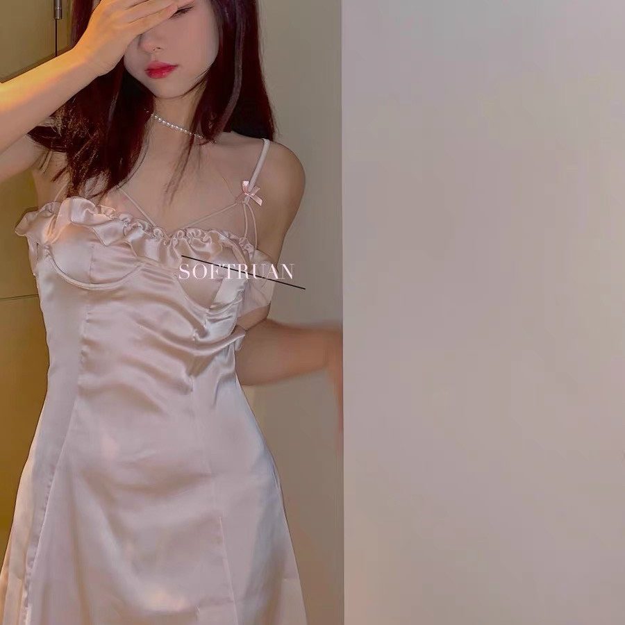 Váy ngủ chất liệu lụa cao cấp kiểu dáng trẻ trung thiết kế cực gợi cảm tôn lên đường cong nóng bỏng của người phụ nữ. Màu: đen, hồng, xám.