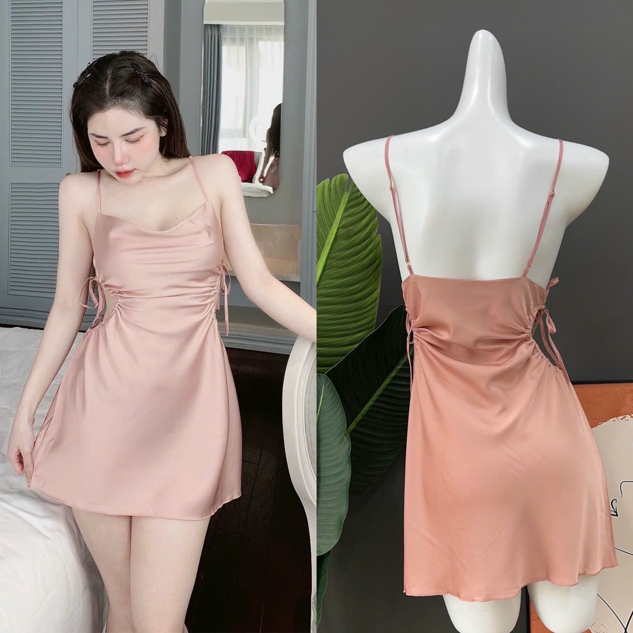 Váy ngủ chất lụa co giãn kiểu dáng trẻ trung khoét eo quyến rũ sang trọng. Màu sắc: đen, đỏ, hồng, xanh ngọc.
