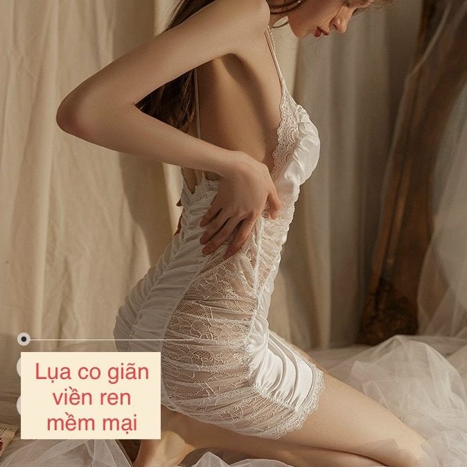 Váy ngủ chất liệu lụa co giãn phối ren mềm mịn ôm sát body tôn đường cong nong bỏng của bạn hở sâu lưng gợi cảm. Màu sắc: đen, trắng, tím.