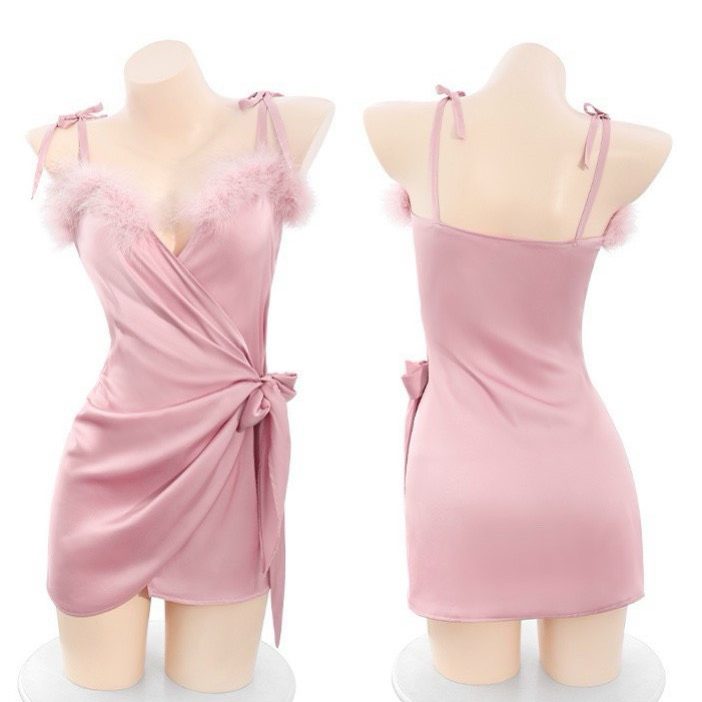 Váy ngủ lụa mềm mịn kiểu dáng hai dây cột chéo hông cực gợi cảm cho nàng thêm phần quyến rũ.