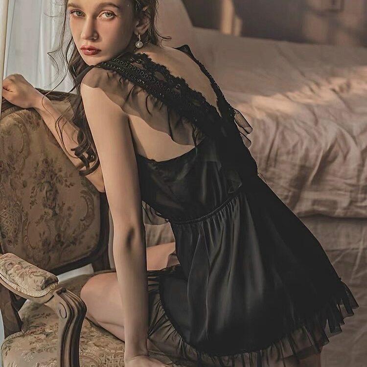 Chất liệu lụa mềm mịn phối ren họa tiết sắc sảo kiểu dáng sang trọng gợi cảm. Màu: đen, trắng.