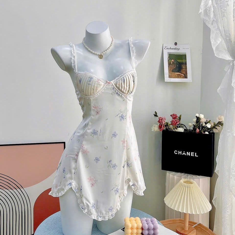 Váy ngủ lụa ngắn thiết kế cúp nâng ngực gợi cảm DN341