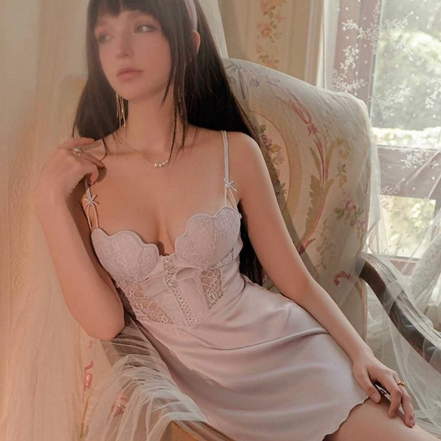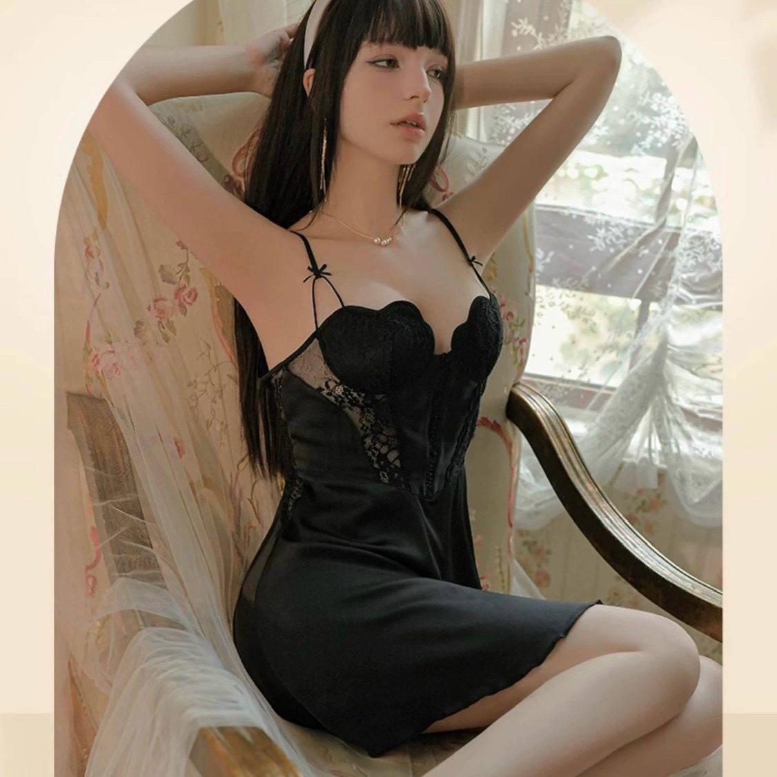 Váy ngủ lụa phối ren kiểu dáng trẻ trung gợi cảm quyến rũ cho nàng. Màu sắc: đen, da.