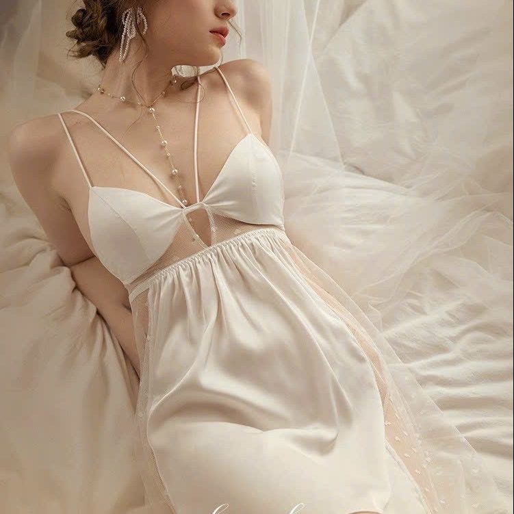Váy ngủ lụa phối ren thiết kế trẻ trung có lót mút kiểu dáng cực gợi cảm cho bạn nữ tôn dáng 3 vòng. Màu sắc: đen, trắng.