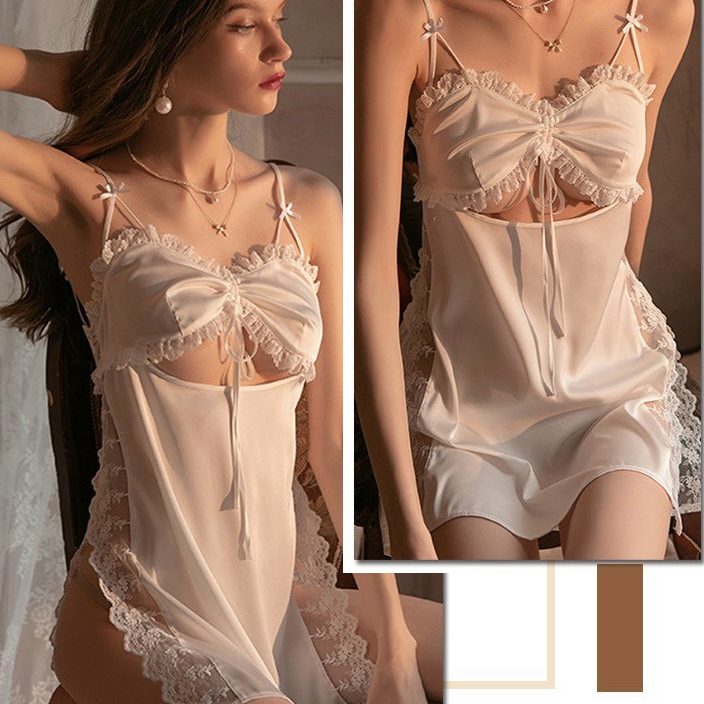 Chất liệu lụa satin cao cấp phối ren kiểu dáng trẻ trung cutout táo bạo xẻ tà hai bên hở sâu lưng gợi cảm.