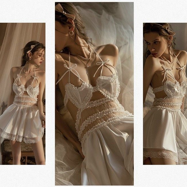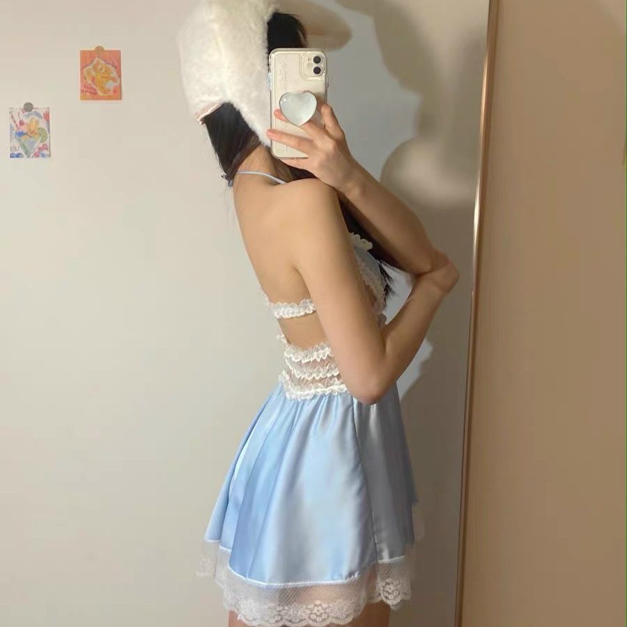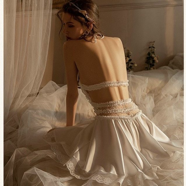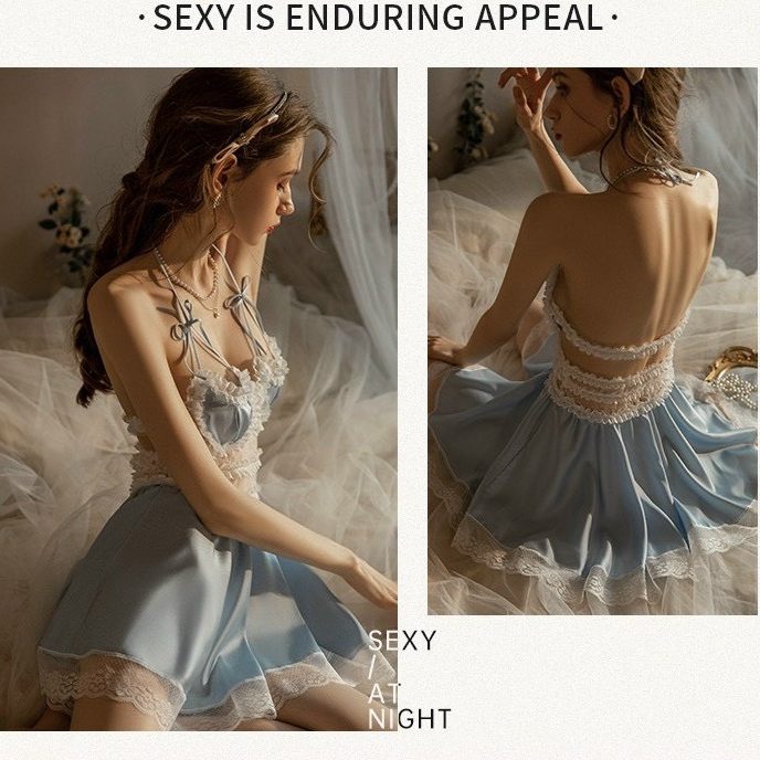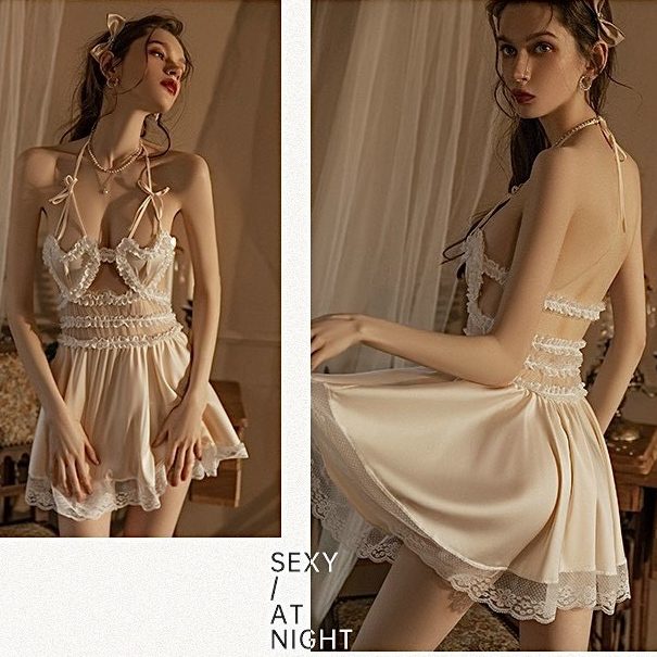 Chất liệu lụa mềm mịn viền ren trong suốt kiểu dáng trẻ trung lưng hở sâu cực gợi cảm cho bạn sức hút quyến rũ không rời mắt. Màu sắc: da, trắng, xanh. Size: M.