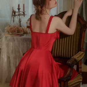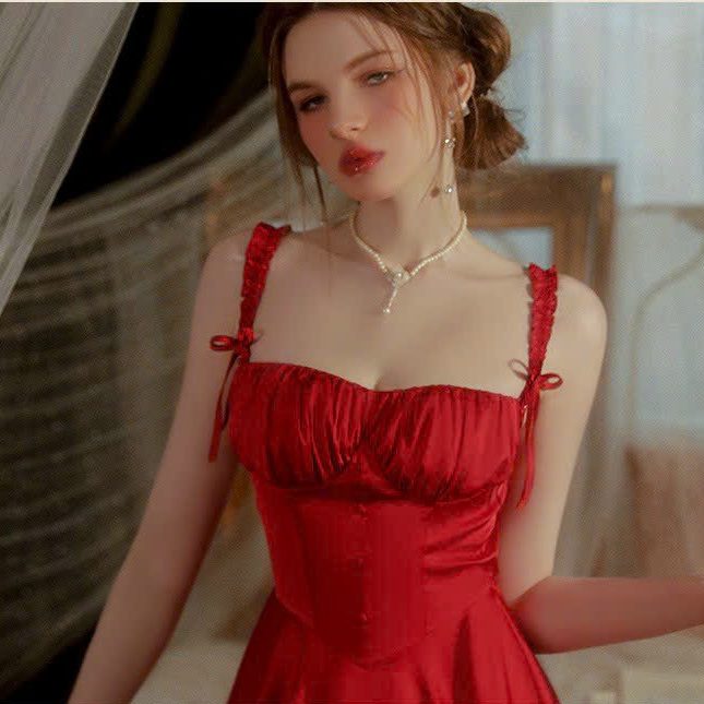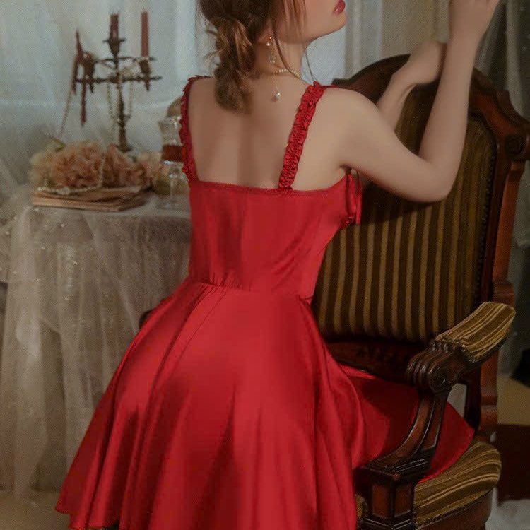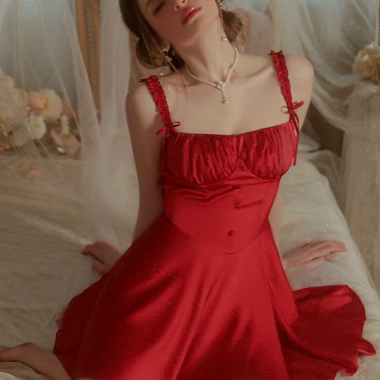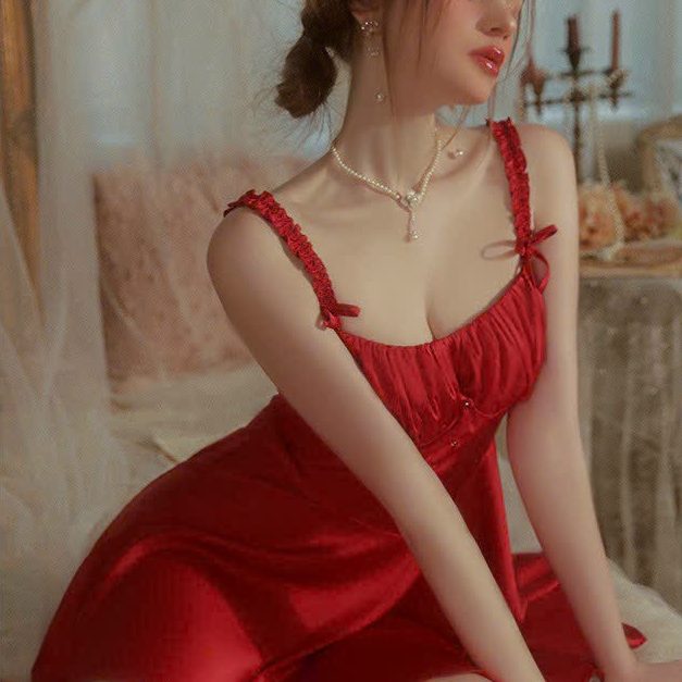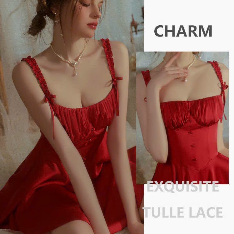 Váy ngủ lụa đầm xoè cổ đổ kiểu dáng đáng yêu dễ thương.