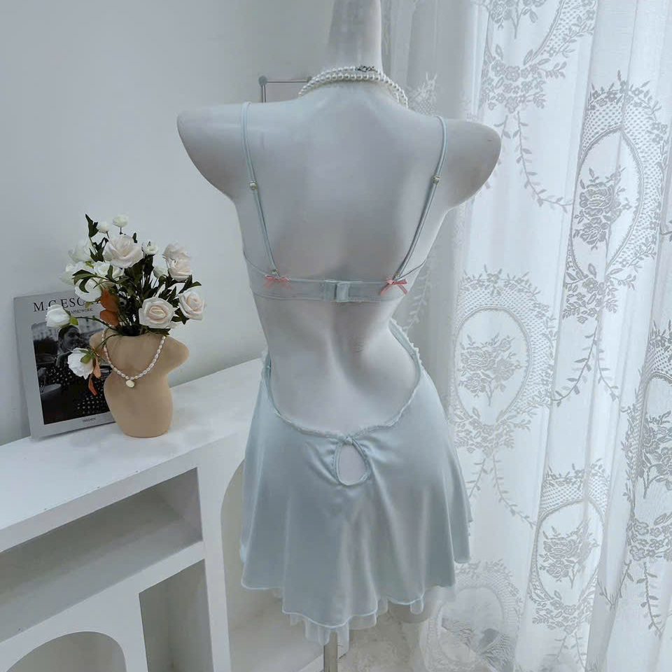 Hình ảnh chi tiết Váy ngủ ngắn lụa phối ren hở lưng quyến rũ