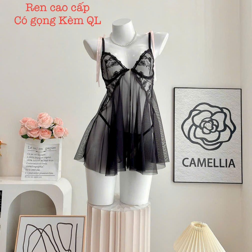 Hình ảnh chi tiết Váy ngủ ngắn ren trong suốt hai dây