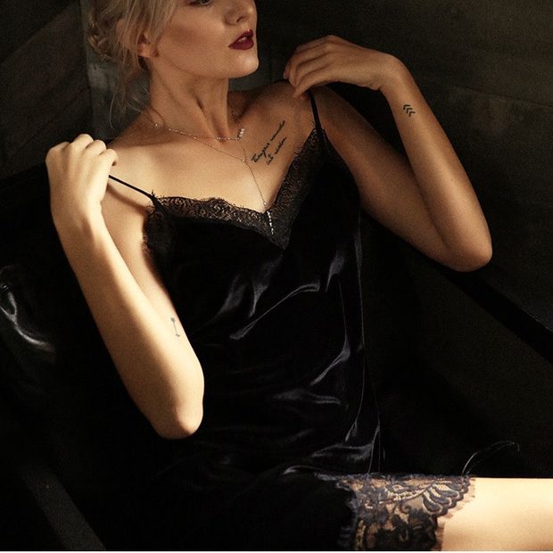 Hình ảnh chi tiết Váy ngủ nhung cao cấp kiểu dáng sang trọng hai màu