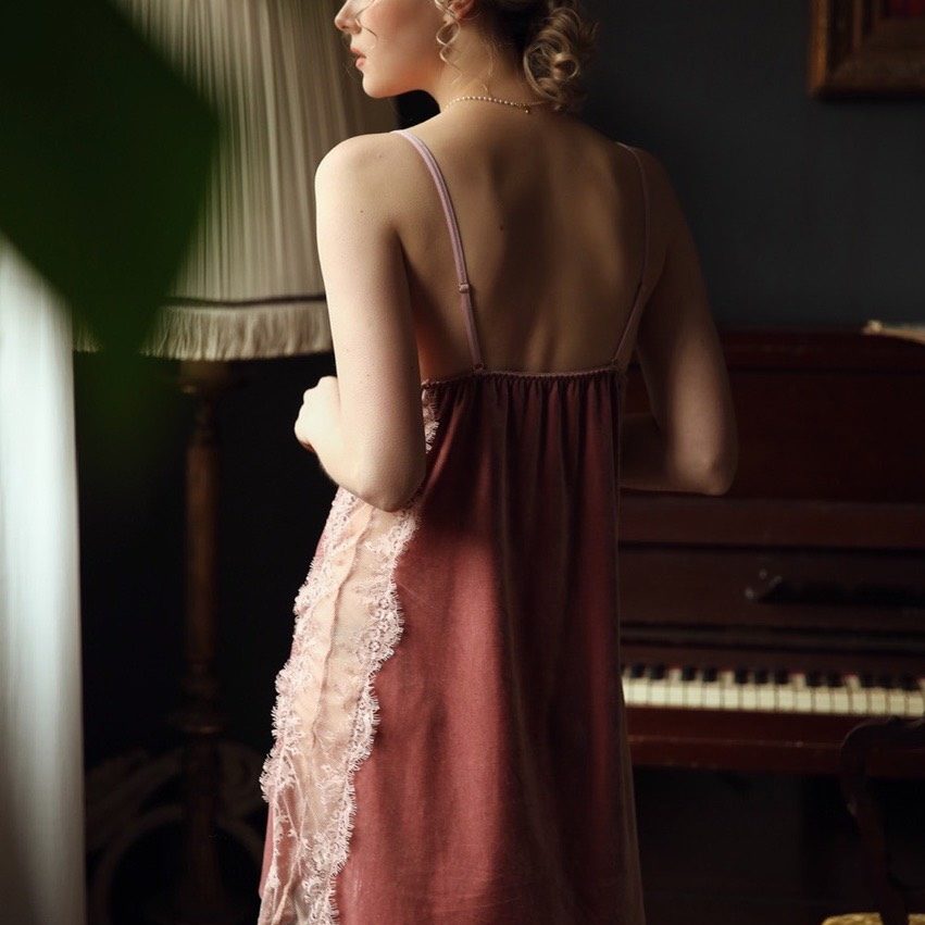 Váy ngủ nhung mềm mịn sang trọng phối ren hai bên hông khoe vẻ sexy gợi cảm, mang lại cho bạn gái vẻ đẹp sang trọng quý phái. Màu: hồng, đen.