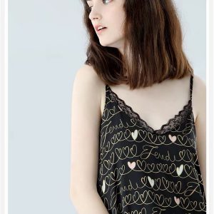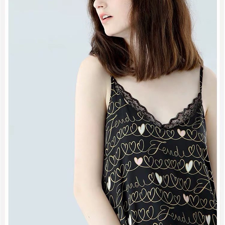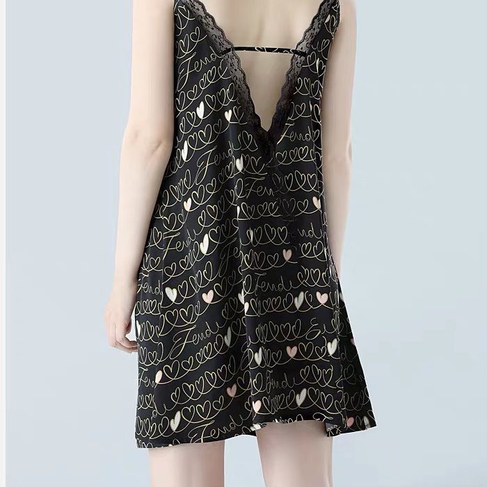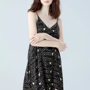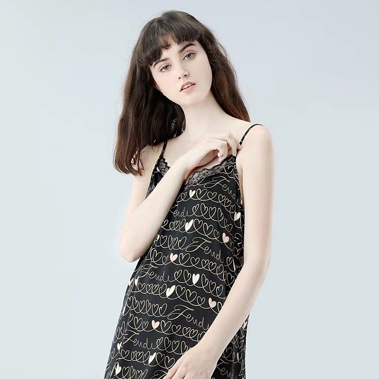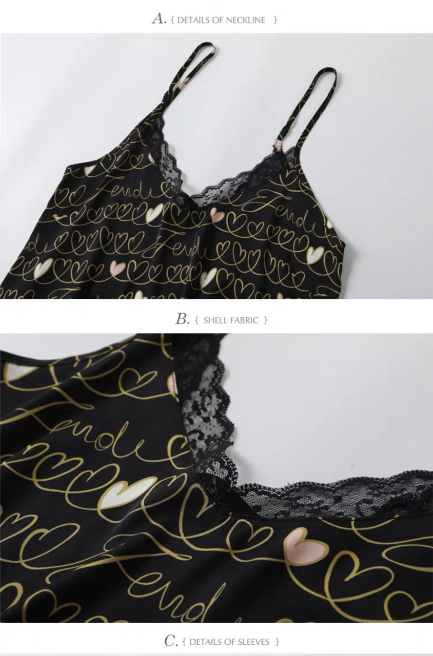 Hình ảnh chi tiết Váy ngủ phi lụa cao cấp họa tiết tim sang trọng 2 màu trắng đen