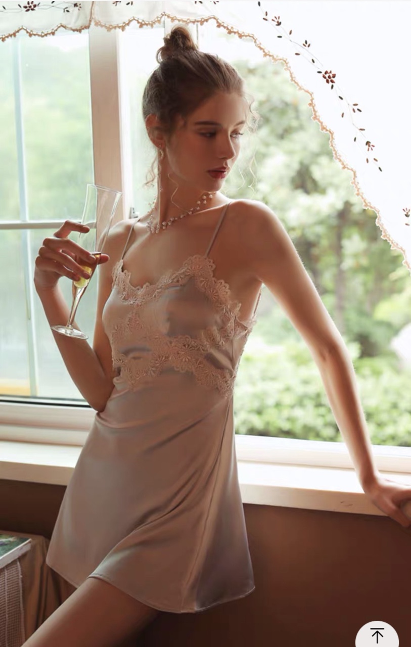 Váy ngủ phi lụa phối ren hai dây, kiểu dáng hiện đại trẻ trung, khoe trọn bờ vai khiêu gợi của người phụ nữ. Hai màu: xám, đen (freesize).