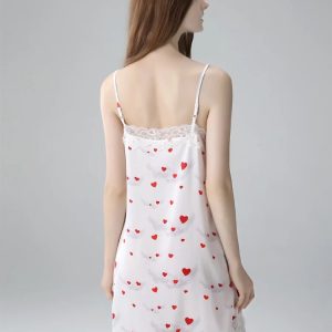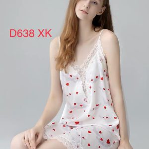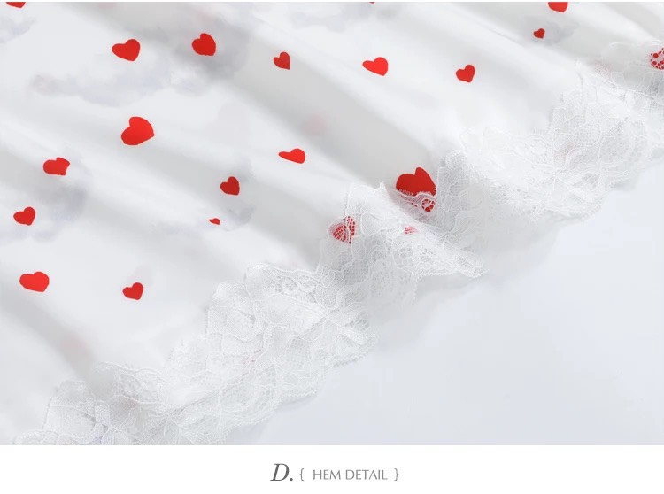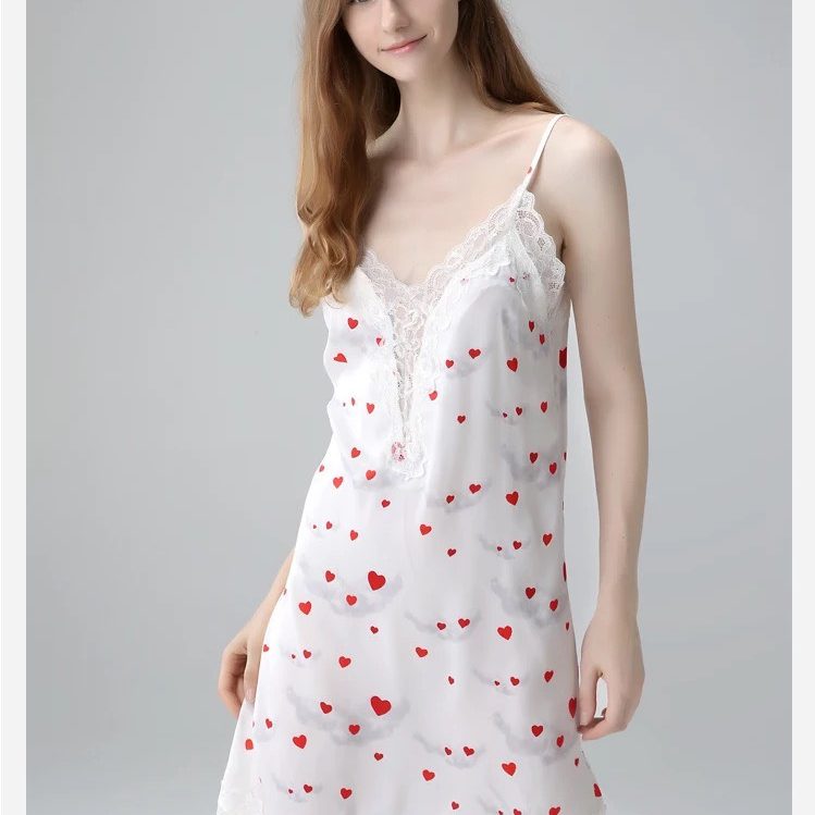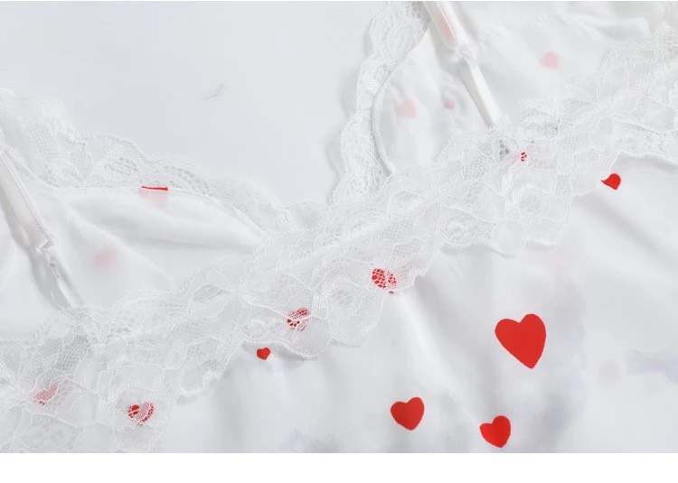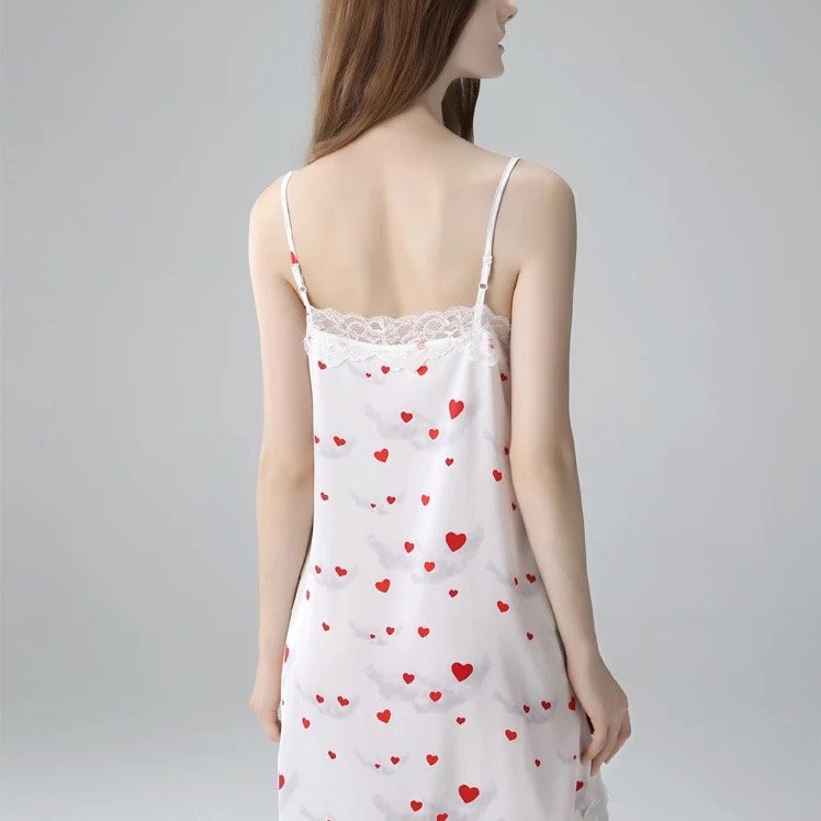 Váy ngủ phi lụa họa tiết tim đỏ sang trọng dễ thương, thiết kế cổ khoét sâu mang lại cho cho bạn phong cách gợi cảm, sự thoải mái tự tin khi mặc.