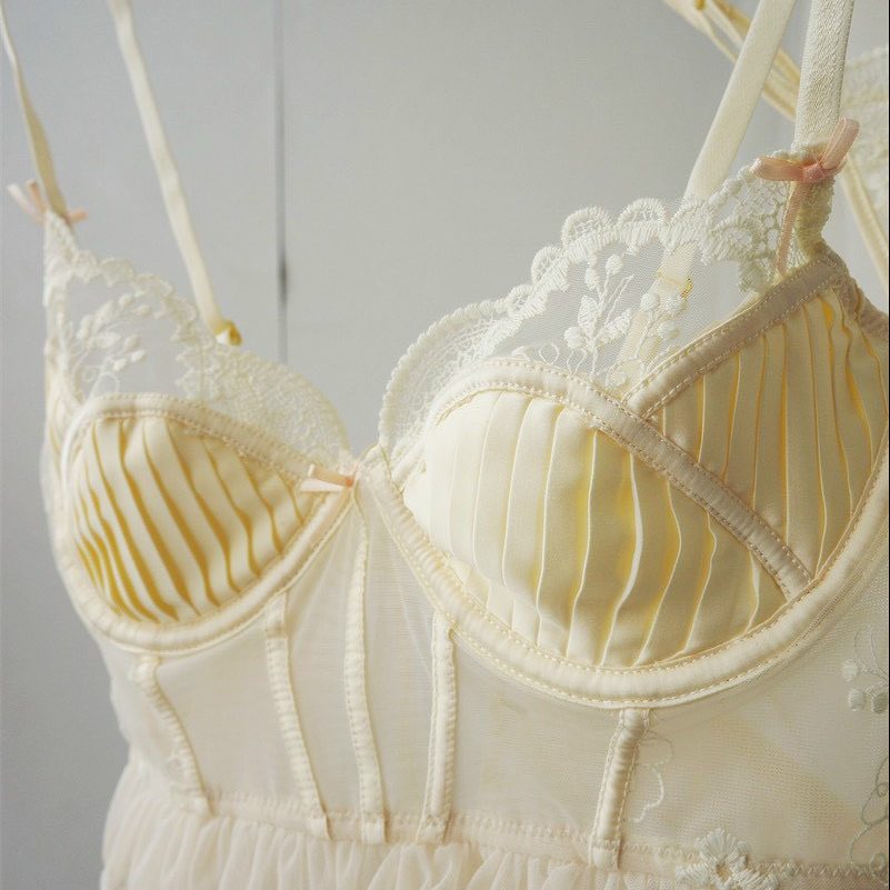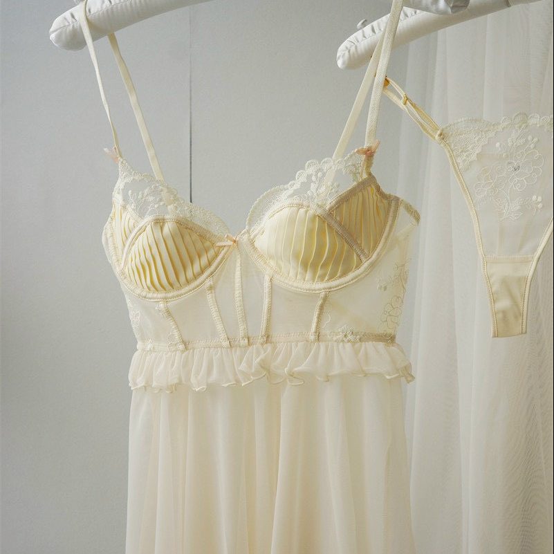 Váy ngủ ren trong suốt chất liệu cao cấp mềm mịn kiểu dáng trẻ trung có gọng nâng ngực kèm quần lót ren gợi cảm.