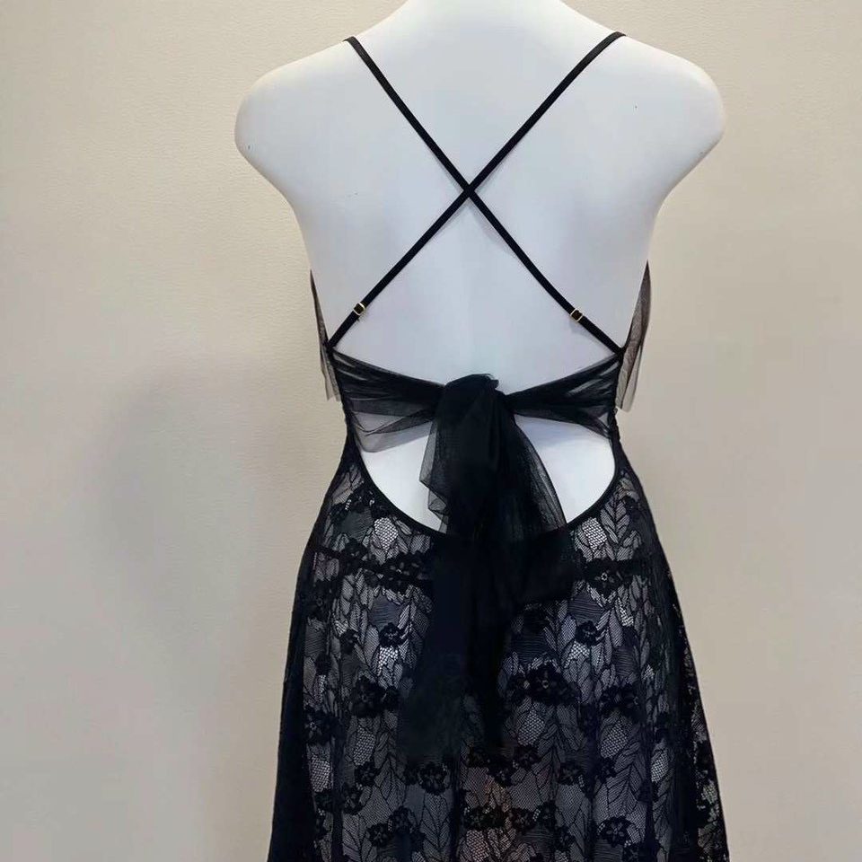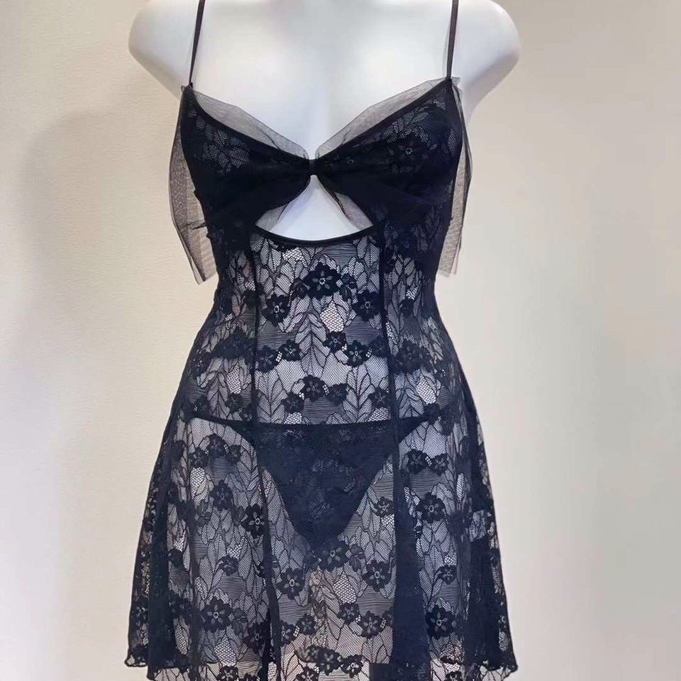 Váy ngủ ren cao cấp đính nơ đáng yêu kiểu dáng trẻ trung hở lưng quyến rũ. Màu sắc: đen, đỏ.