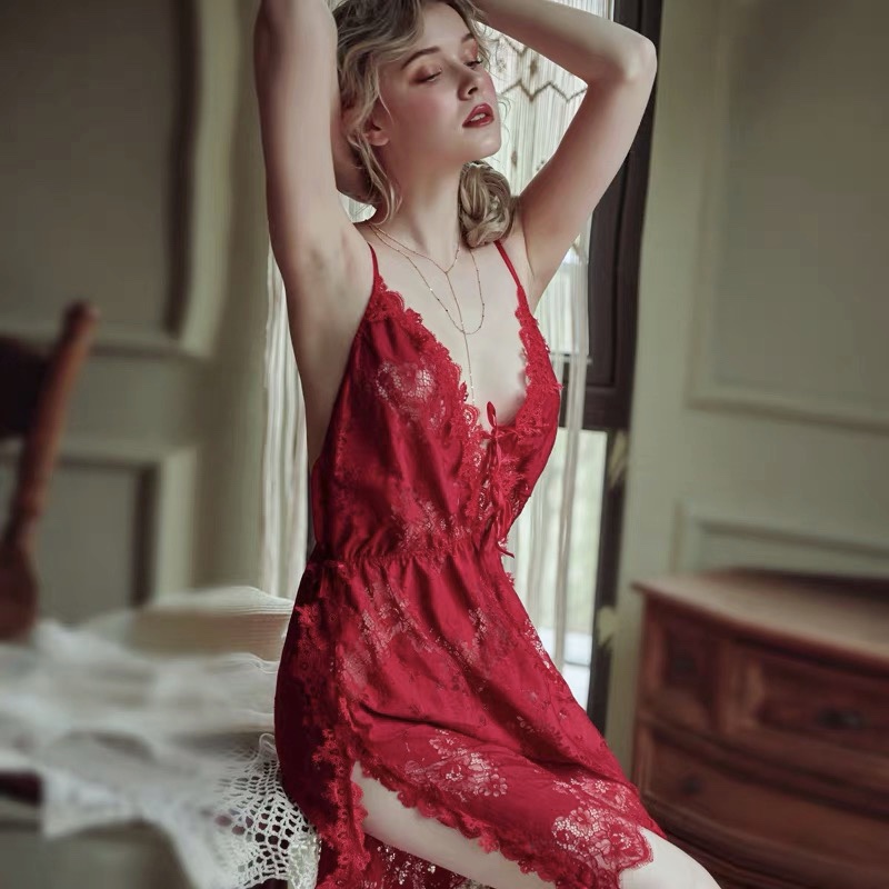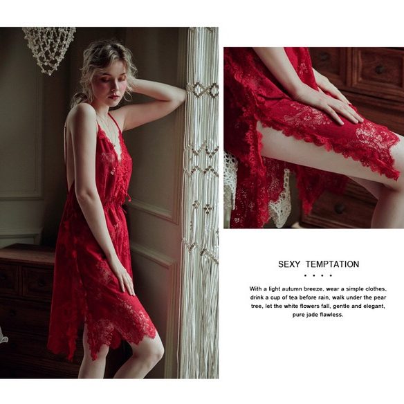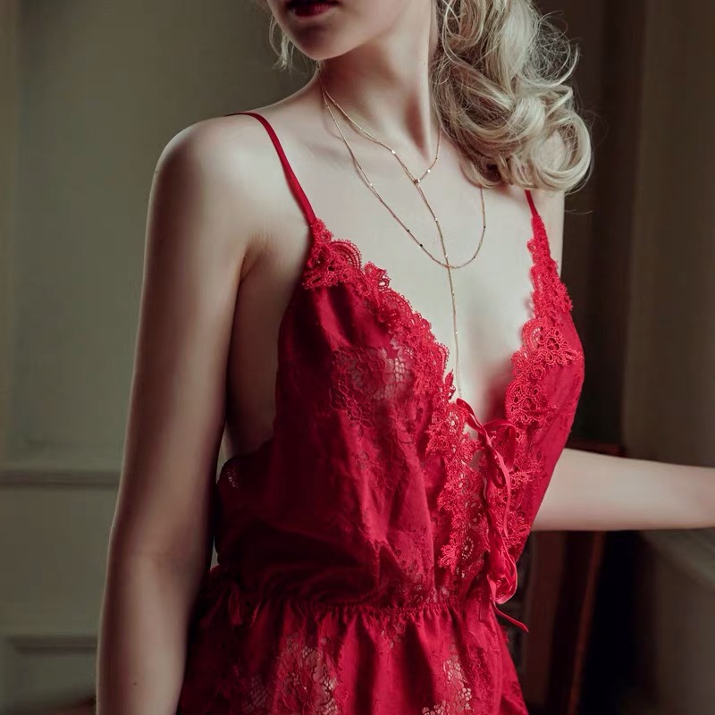 Đầm ngủ chất liệu ren cao cấp đảm bảo không ra màu. Thiết kế hiện đại mang đến cho bạn sự sang trọng quý phái khi ở nhà. Hai màu: hồng, đỏ (freesize).