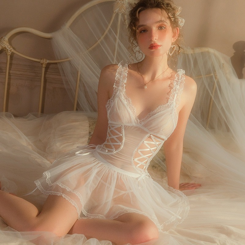 Váy ngủ ren trong suốt kiểu dáng trẻ trung cắt xẻ hai bên hông khoe vẻ gợi cảm. Màu sắc: đen, trắng.