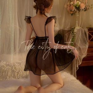 Chất liệu ren mềm mịn trong suốt kiểu dáng váy cực gợi cảm cho nàng kèm quần lót. Màu sắc: đen, hồng.