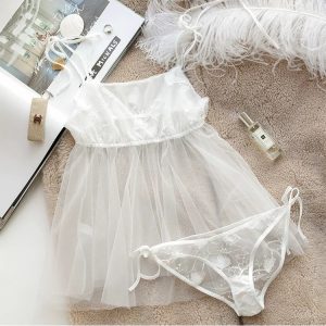 Váy ngủ ren xuyên thấu, kiểu dáng hiện đại trẻ trung, dành riêng cho các bạn thích sự gợi cảm cho giấc ngủ thêm nồng nàn thăng hoa (freesize).