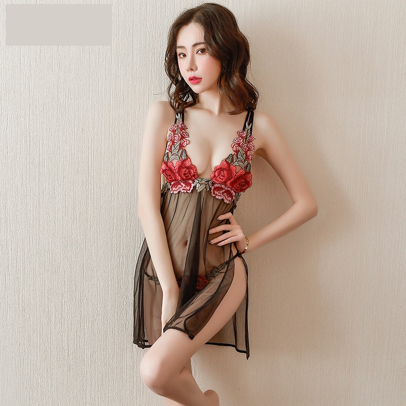 Váy ngủ ren trong suốt xẻ tà 2 bên hông phối ren hoa thêu cực sexy (kèm quần lọt khe). Màu: đen, trắng.