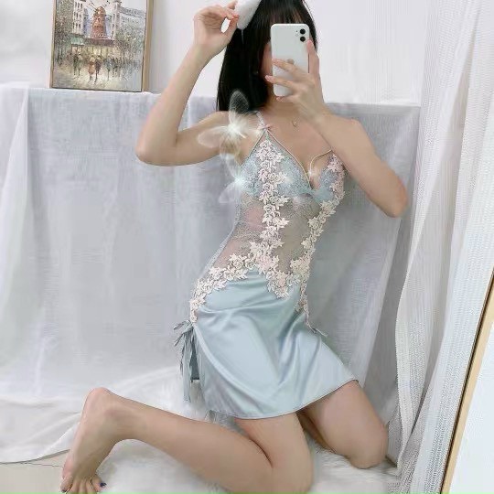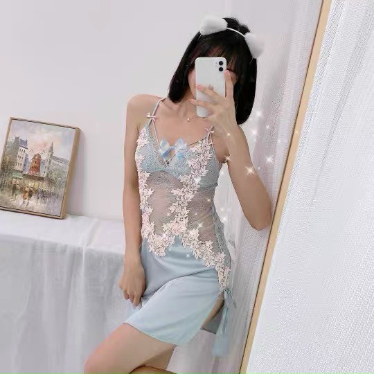 Chất liệu satin cao cấp co giãn phối ren xuyên thấu xẻ sâu lưng cực gợi cảm cho nàng thêm phần gợi cảm sexy. Màu: đen, xanh.