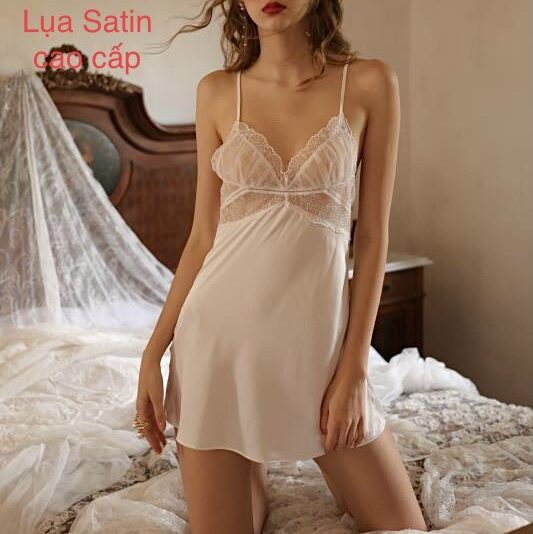 Chất liệu lụa satin cao cấp phối ren đẹp kiểu dáng sang trọng hở lưng quyến rũ. Màu: đen, trắng.