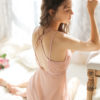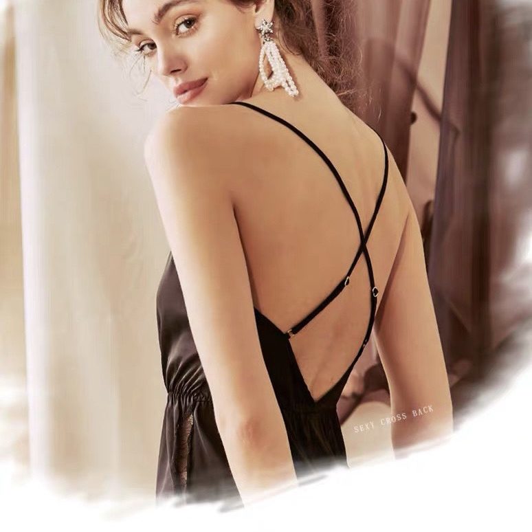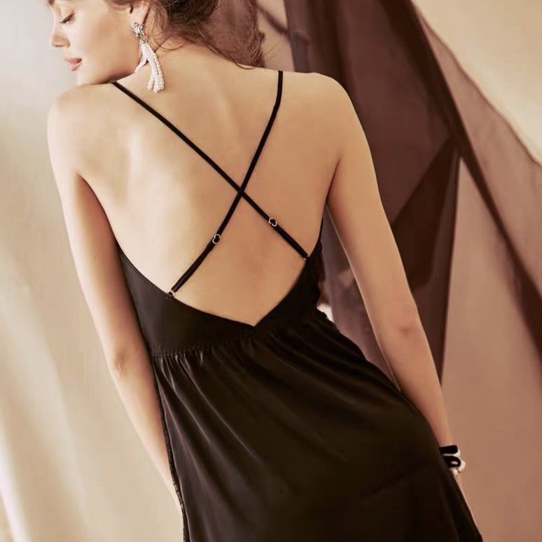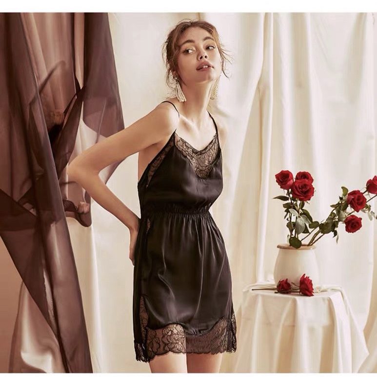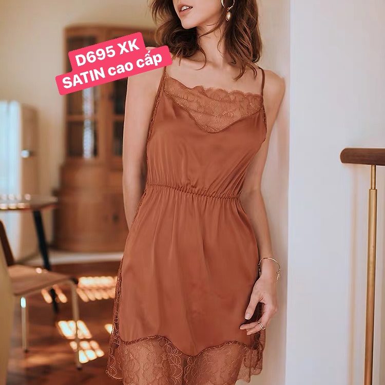 Váy ngủ chất liệu satin cao cấp phối ren quyến rũ, thiết kế kiểu dáng hai dây khoe lưng nõn nà sexy là vũ khí lợi hại của người phụ nữ. Màu: da, đen.