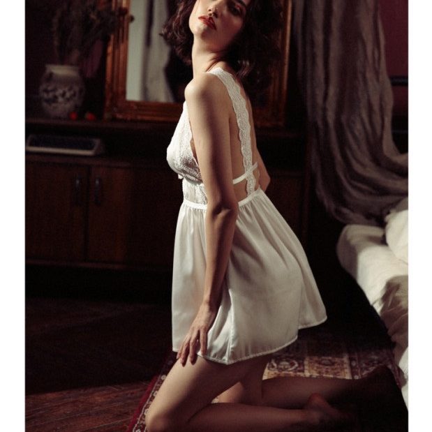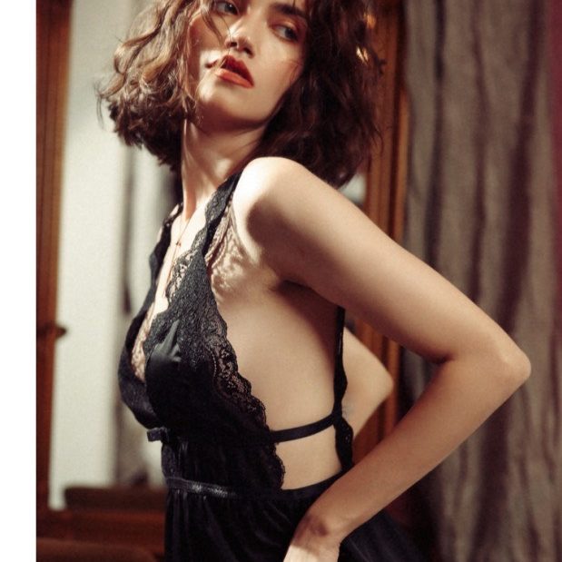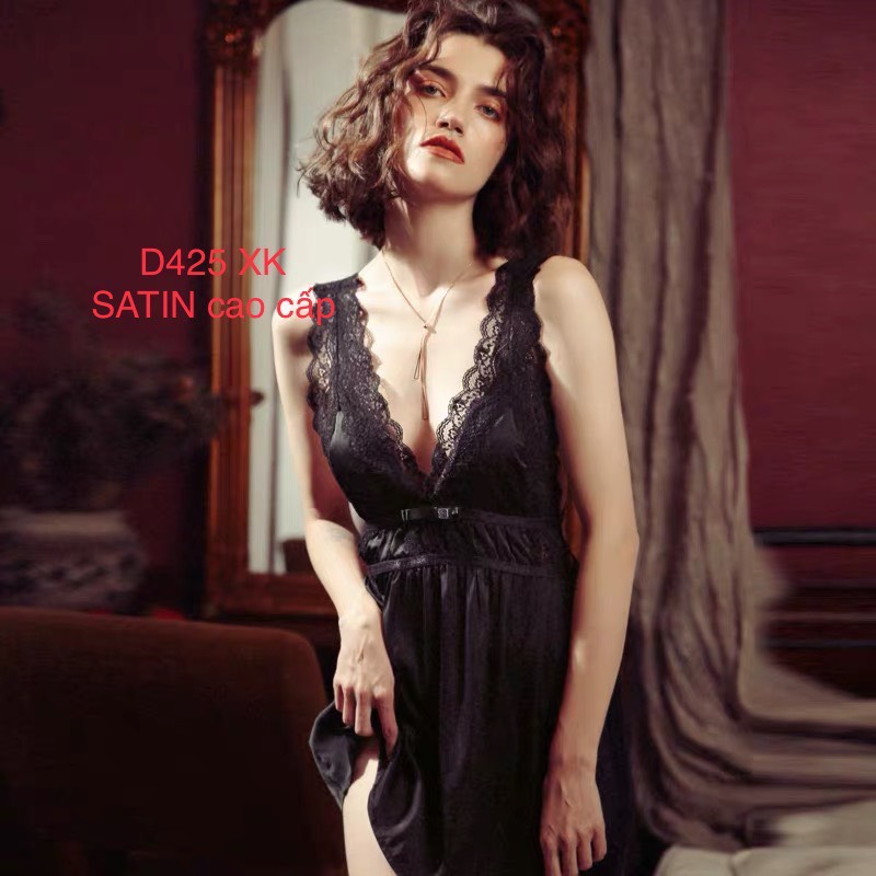 Váy ngủ đẹp chất liệu satin lụa phối ren mềm mịn kiểu dáng hở sâu lưng khoe vẻ gợi cảm khó cưỡng. Màu: đen, trắng.
